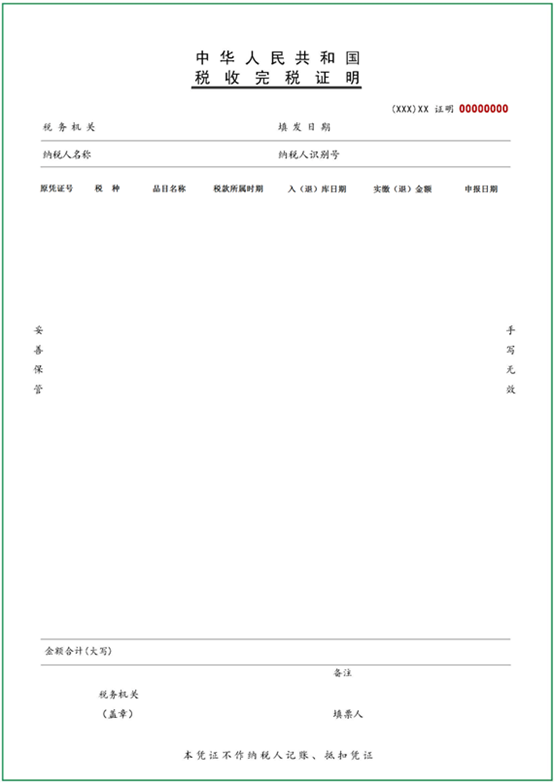 图2:《个人所得税完税证明》表样