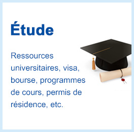 Ressources universitaires, visa, bourse, programmes de cours, permis de résidence, etc.