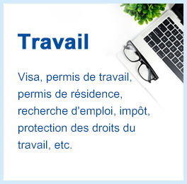 Visa, permis de travail, permis de résidence, recherche d'emploi, impôt, protection des droits du travail, etc.