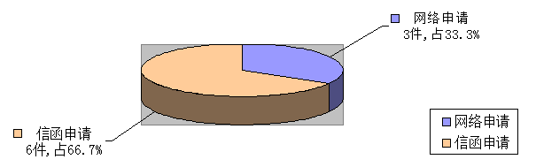 2016年,我局共受理政府信息公开申请9件,申请方式中,通过网络申请3件,占总数的33.3%;以信函形式申请6项,占总数的66.7%。
