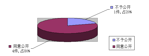 我局受理的9件政府信息公开申请,均在法定之日内向申请人出具了登记回执,有5件在2016年12月31日前按时办结并向申请人寄发了答复告知书,其中,4件同意公开,向申请人提供相关信息占总数的80%;1件因涉及国家秘密“不予公开”,占总数的20%。另外4件因申请时间为2016年12月下旬,于2017年1月答复并向申请人寄发了答复告知书,计入2017年度数据统计。